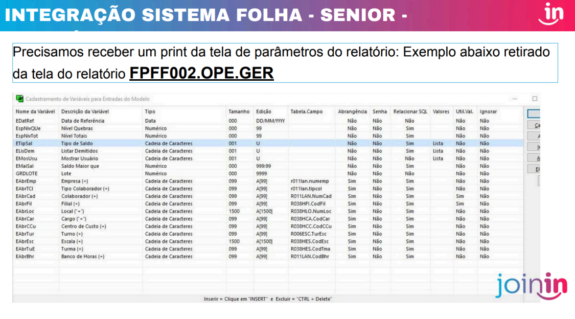 CAMINHO PARA VARIÁVEIS DO RELATÓRIO