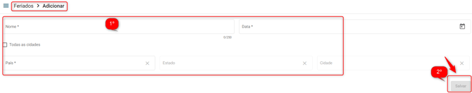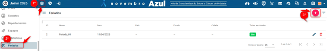 Como cadastrar feriados na Joinin Para cadastrar um feriado na plataforma da Joinin, é necessário seguir o passo a passo abaixo: Configuração > Feriados > Adicionar > Salvar Após preencher a informações do feriado é preciso clicar em Salvar.