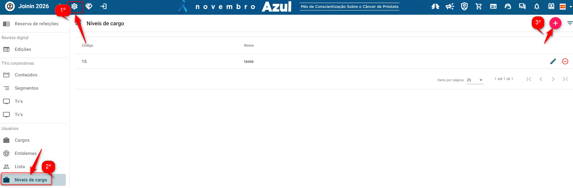 → Este manual tem o propósito instruir para criação de nível de cargo na plataforma da joinin.