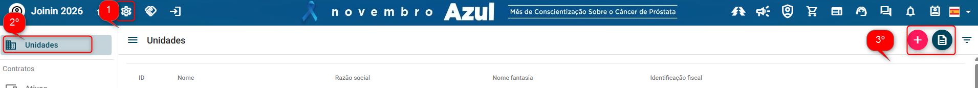 Para criar unidades e baixar relatório das unidades, é necessário seguir o passo a passo a seguir:
