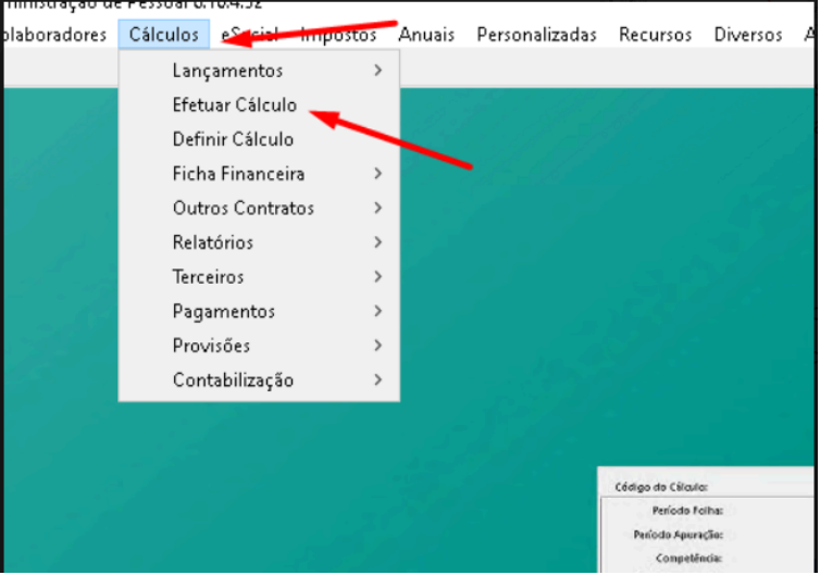 ● Acesse o menu Cálculos.