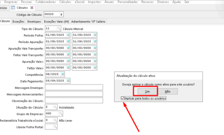“Deseja aplicar o cálculo como ativo para este usuário?”
