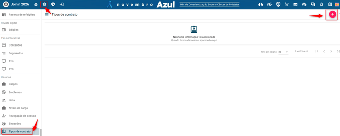 Configuração > Tipos de contrato > Adicionar > Salvar.